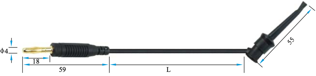 - 4 mm stackable banana plug → fine hook probe end
