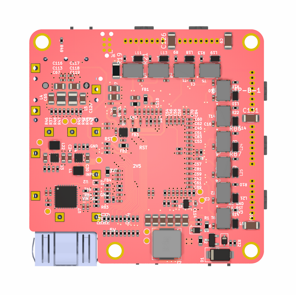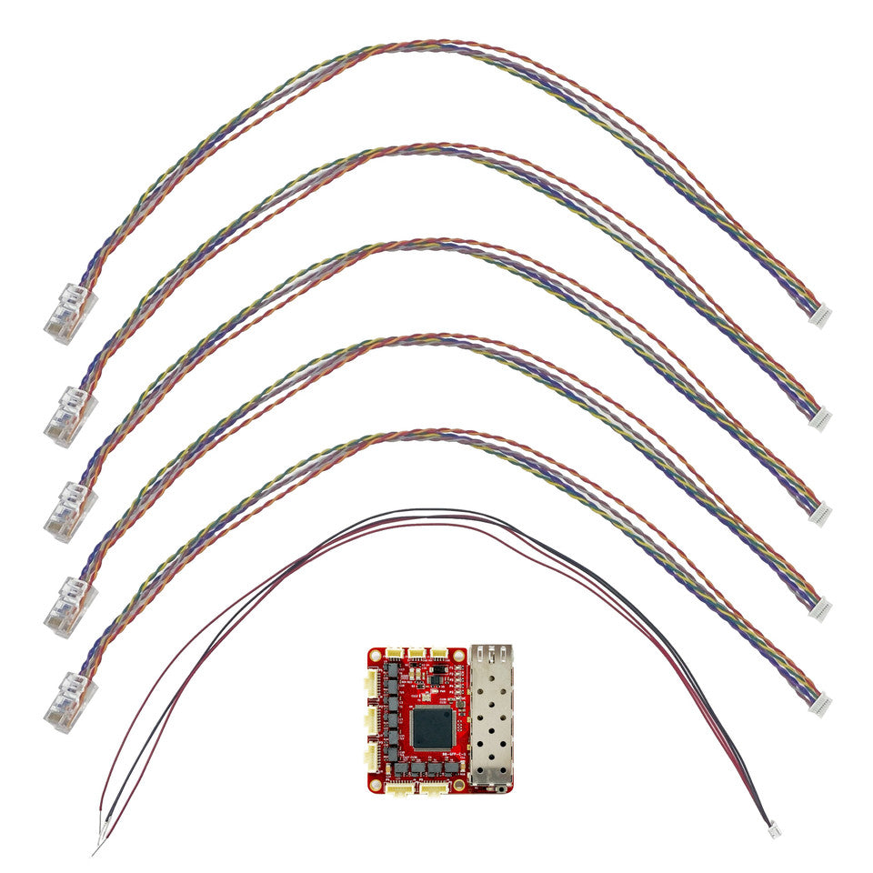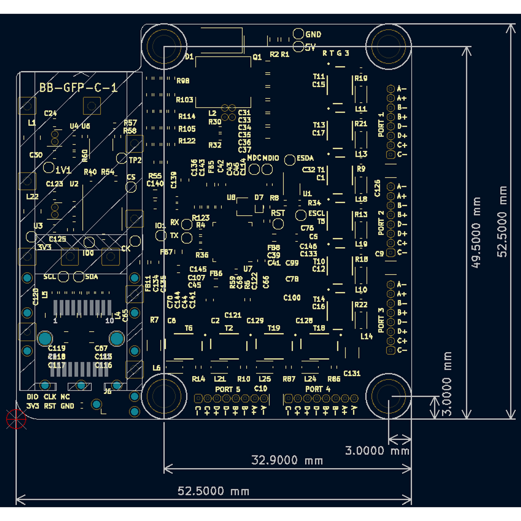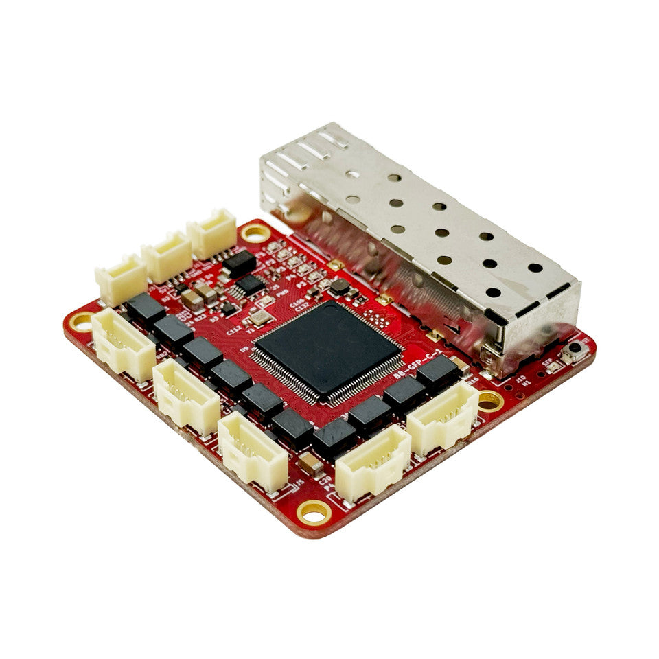 GigaBlox SFP has a footprint of 52.5mm x 52.5mm, and runs from a very wide input voltage of 5 - 60V, which is overvoltage and reverse polarity protected. This allows the board to be powered from noisy voltage buses typical in mobile platforms like UAVs, USVs and robots. All ports on GigaBlox SFP are galvanically isolated from each other.