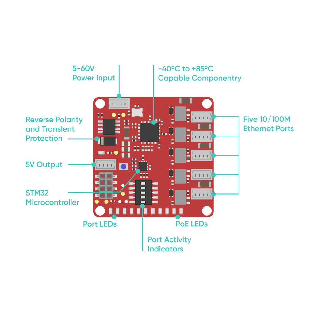 Botblox have developed SwitchBlox Industrial for three main reasons. Firstly they wanted to upgrade our initial SwitchBlox design to improve upon size, performance and temperature range. They also wanted to help mitigate some of the stock issues on our rugged boards by providing a "middle-ground" alternative between the standard and rugged series. Finally we wanted to offer basic switch management in a ridiculously small package.